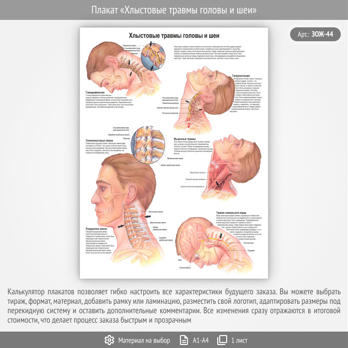 Плакат «Хлыстовые травмы головы и шеи» (ЗОЖ-44, 1 лист) в Ачинске купить